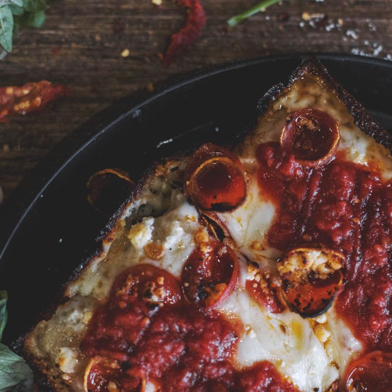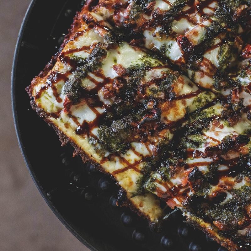 Red sauce, brick cheese, shredded mozzarella, pepperoni, sausage, bacon, mike's hot honey, red chili flakes, jalapeños | $12 / 19 / 27 / 32