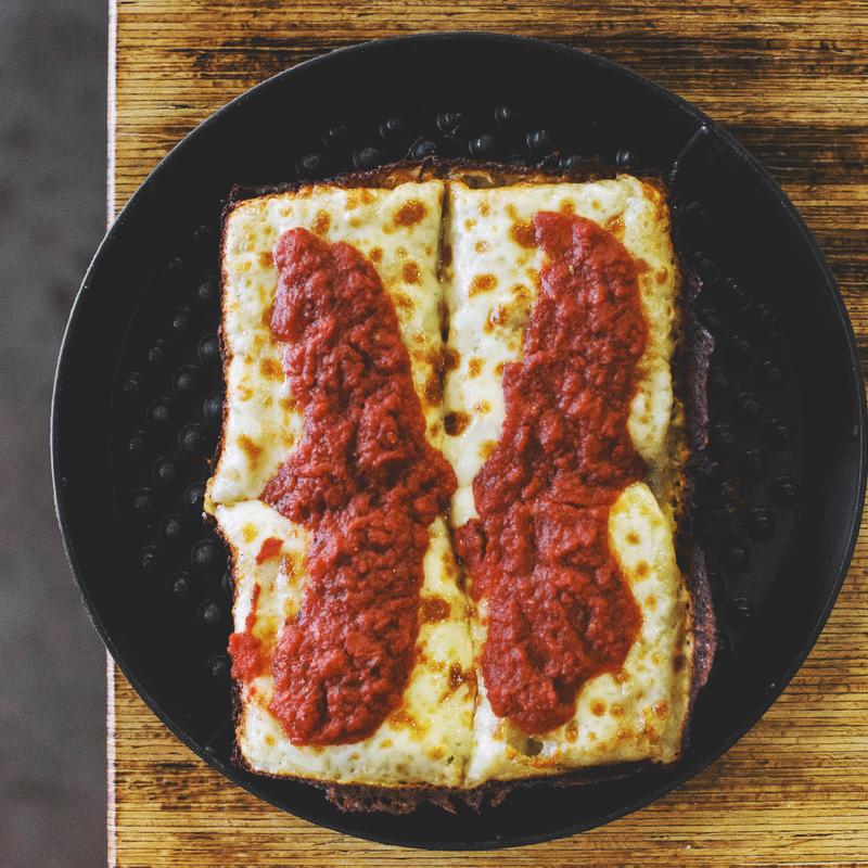 Red sauce, brick cheese, shredded mozzarella | $10 / 17 / 25 / 30