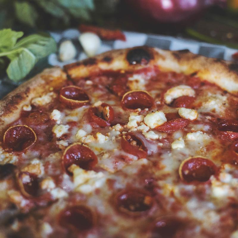 Red sauce, shredded mozzarella, pepperoni, goat cheese, Mike's hot honey | $11 / 18 / 26 / 31